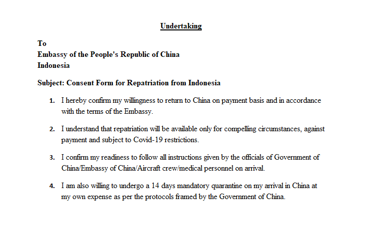 *The purpose of this collection of information is only to inform the Embassy of the People's Republic of China in respect of those who want to return to China immediately